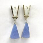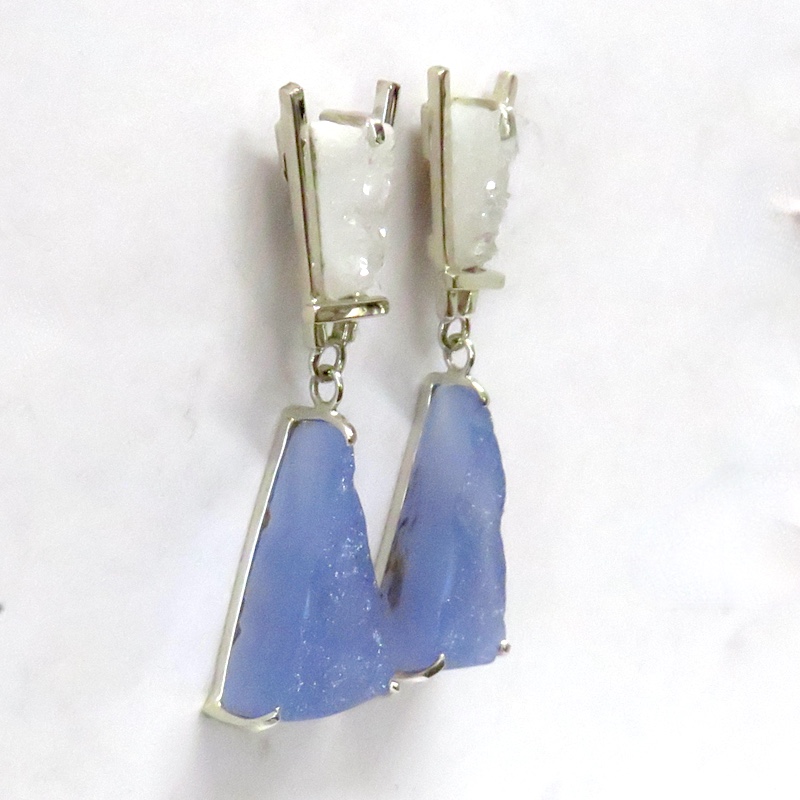 Blue Chalcedony Sleeping Beauty Turquoise Gem Sculpture 18K White Gold One-Of-A-Kind Drop Earring