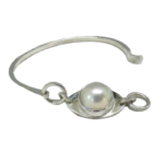 This Mabe Pearl latch bracelet is part of a new bracelet collection I’m featuring in Sterling Silver. This original design is the latest edition of an innovative bracelet design I have made since I was in my first store. The store was on Ocean Avenue in Carmel and it was forty five years ago. I’m reviving and updating this latch style bracelet that was a favorite with my clients. The bracelets latching mechanism is borrowed from a ring that I had seen in a museum collection. Some of the bracelets many assets are it has contemporary looks and the ability to be sized to fit any wrist. The bracelet is also easy to put on and very secure. This bracelet features a round Mabe Pearl that is from the South Seas with a high luster and fine white rose color. Pearls are always wonderful to wear but you don’t see many bracelets styles beyond the traditional. This is a great opportunity to wear a very different style in a pearl bracelet. We know you are not afraid to be different. This Mabe Pearl latch bracelet will be a great addition to your silver jewelry collection.