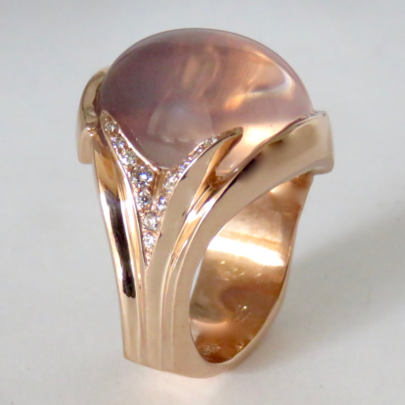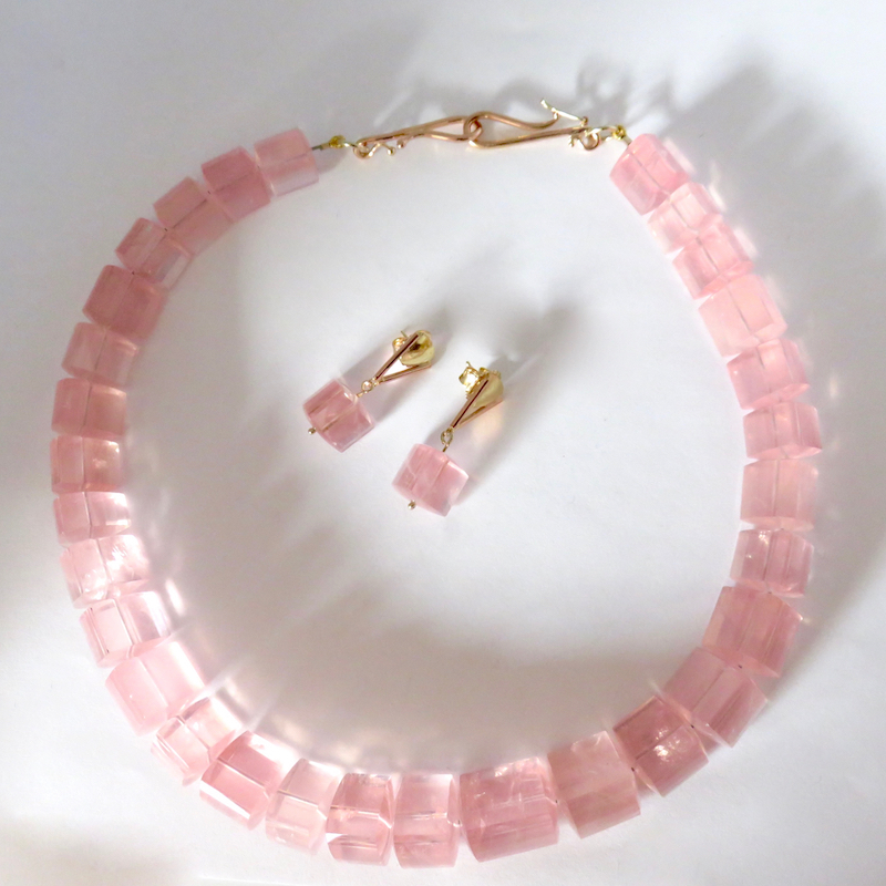 This year a client asked me to create a ring and bracelet to complement a great strand of large rose quartz crystals that she had purchased at a Roundtable event.